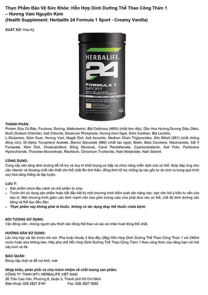 H24 F1 Sport – Hương Vani Nguyên Kem